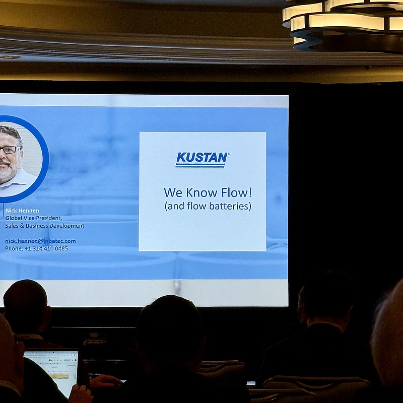 Kustan war mit Nick Hennen - VP Sales und Business Development und Christian Papmahl - CEO vertreten. Nick Hennen hielt einen Vortrag, wie Kustan mit unserer langjährigen Expertise im Kunststoffanlagenbau unsere Partner bei der technischen Umsetzung ihrer Flow-Batterie-Technologien unterstützen. Unter dem Claim „We Know Flow“ verfolgen wir das Ziel, unsere Präsenz im Flow-Batterie-Markt konsequent auszubauen und gemeinsam mit unseren Kunden die Energiezukunft aktiv mitzugestalten.